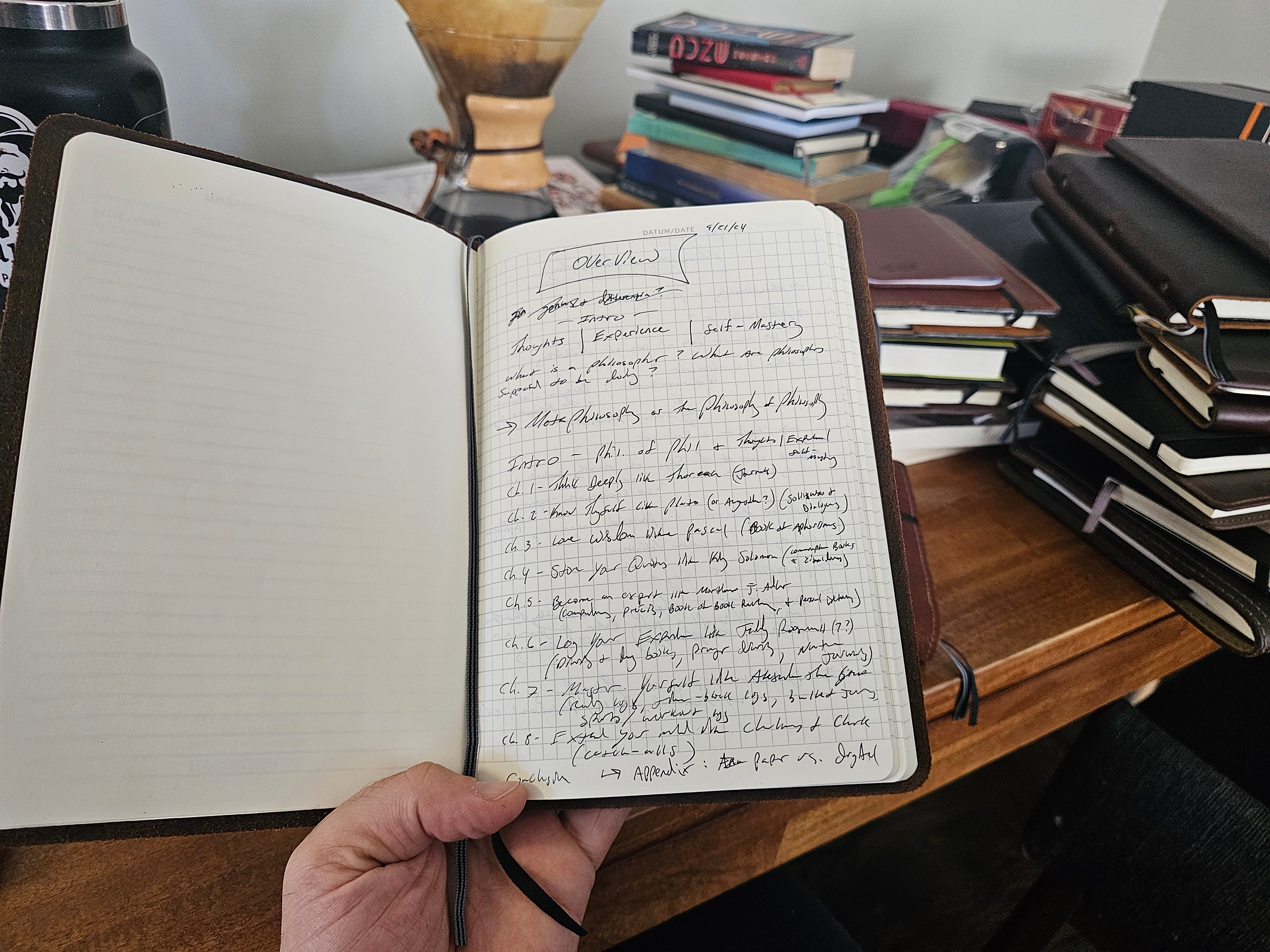 For the lay thinker-folks, this book is your book. Notebooks, philosophy, a tiny bit of theology, new ideas, new habits—let’s go! I’m bringing you up to the top shelf cookies. You’re going to love it. It’s basically “ParkNotes the Book” but beefed up much more with way more research, attention to detail, and turn-of-phrase. Hopefully they let me do footnotes but if not, then you’ll have a butt-ton of end notes to help with your own further study.